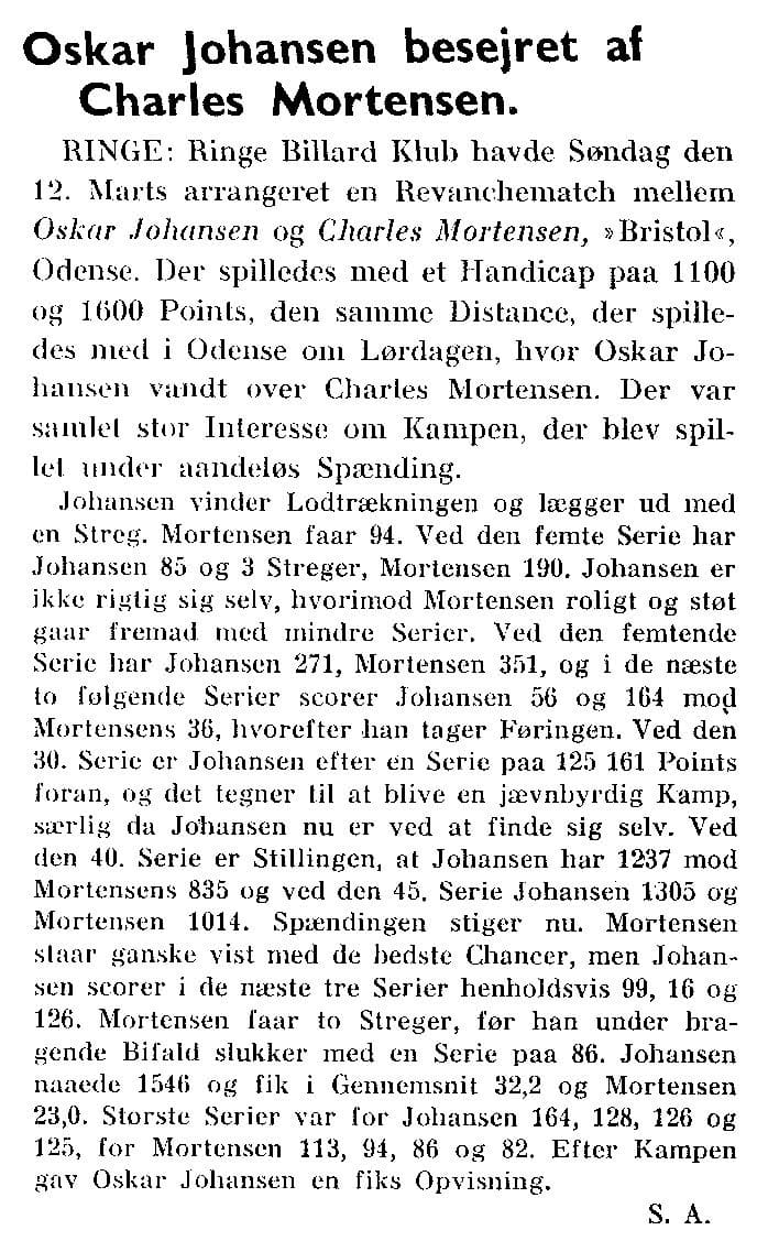 Bristols første “stjernespiller” er Charles Mortensen. Han er omtalt i Billard i 1939 og 1940.